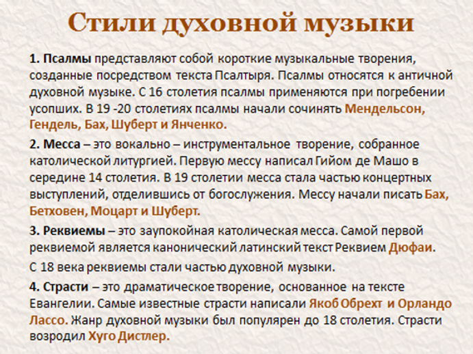 Уважаемые участники квеста! На этой странице мы предлагаем Вам познакомиться с историей духовной музыки, с её яркими представителями и с творчеством исполнителей христианских произведений.